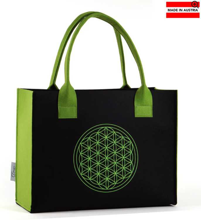 Schlicht, harmonisch und stilvoll – unsere Filztasche mit Lebensblume-Motiv steht für natürliche Eleganz und positive Energie.
